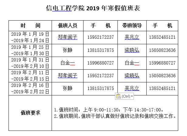 Bevictor伟德官网2019年寒假值班表