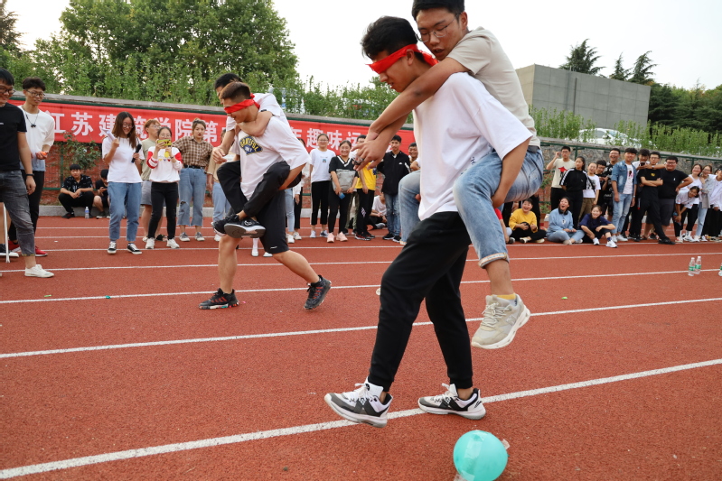 本次素质拓展共设置了4个正式项目,1个附加项目,历时2个半小时。所有参加活动的新生按班级组队,要求各组队员团结协作,共同完成各项任务,最后根据任务完成数量和用时长短进行排名。天气炎热,同学们在活动开始还有些拘束,但随着“跳大绳”“车轮滚滚”“气球快跑”“瞎子背瘸子”等项目的展开,同学们渐渐敞开心扉,团队配合也越来越默契,对彼此的了解更加深入,团队友谊进一步巩固。