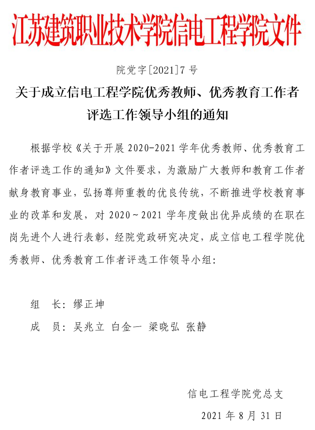 关于成立Bevictor伟德官网优秀教师、优秀教育工作者评选工作领导小组的通知