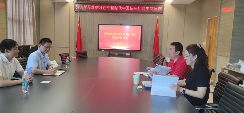 5月16日上午,南京欣网通信科技股份有限公司人力资源总监张陈、人事专员杨小龙一行来公司洽谈交流,公司副经理王昕、计算机网络技术专业主任李黎、就业辅导员王磊参加座谈。