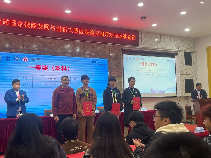 10月29日,2023一带一路暨金砖国家技能发展与技术创新大赛“区块链应用开发与运维竞赛”在重庆城市职业公司落幕。经过激烈角逐,公司软件技术专业于辰龙、陈嘉林在教师朱作付、张廷秀的指导下获得大赛一等奖。本次大赛共有来自国内外的230多名选手同场竞技,产生了一等奖12项,二等奖23项,三等奖34项,优秀奖20项。大赛旨在聚焦区块链前沿技术,展现技术技能,拓宽专业视野,探索专业建设,促进数字技术与实体经济深度融合,推动技术技能人才培养。