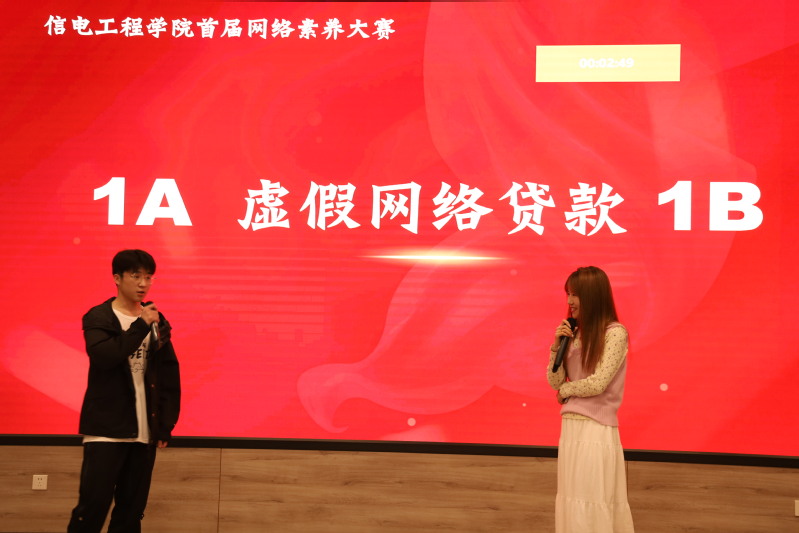 本次比赛共设置“朋友圈发布技巧”、“诱骗防骗对决”、“网络热词对决”三个环节。朋友圈发布技巧环节,通过设置主题、限定时间,考验了参赛同学在短时间内检索图片、文字等网络信息的能力和运用网络语言表达的能力。诱骗防骗对决环节,通过不同情景的演绎,诱骗者向现场同学展示了网络诈骗的惯用话术和常见套路,防骗者带领同学们掌握跳出电信诈骗的知识和技能。网络热词对决环节,邀请参赛同学上台随即抽选一个网络热词为其释义并说明自己关于该网络热词的思考,以此考验参赛同学在网络流行词汇方面的知识储备以及辩证思维能力。
