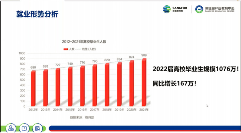 当日下午,深信服股份有限公司产业教育中心职业规划师李航为公司师生开展了一场线上直播---如何成为一名合格的网安人,全院1600余名员工和师生观看了直播。