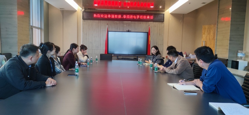 10月23日下午,华道数据股份有限公司徐州分公司人事部,无锡华润微电子有限公司产业部经理、人事专员一行来公司洽谈交流,公司党总支书记、副经理记、就业辅导员参加座谈。