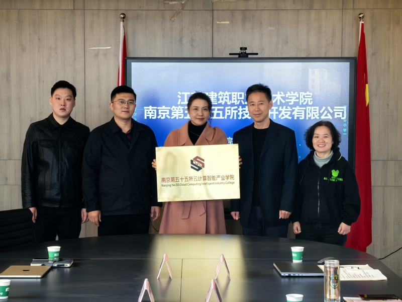经理吴兆立首先对公司目前现有专业、团队力量以及在校企合作方面的发展现状和未来规划进行了介绍,企业代表则详细阐述了公司的业务范围、技术优势以及与教育部供需对接就业育人项目的合作情况进行了深入交流,表达了对双方合作前景的信心。随后,南京第五十五所技术开发有限公司向公司分别颁授“云计算智能产业公司”、“就业服务中心” 和 “工匠工坊” 牌匾并合影留念。