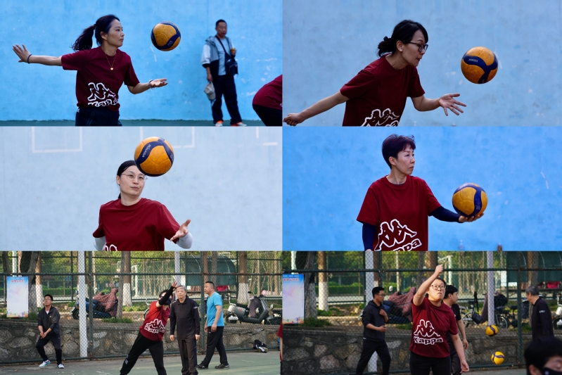 平日手握粉笔的教师们,在赛场上化身“排球战士”,发球如流星划空,扣杀气势如虹,拦网精准果断,动作丝毫不输专业选手。女教师们在赛场上团结协作,高喊着“我来!”“好球!”,默契的跑位、灵动的接球、果断的进攻,每一次得分都凝聚着团队的智慧与信任;男教师们则凭借矫健身姿与强力攻防,一次次点燃赛场热情,赢得观众阵阵喝彩。